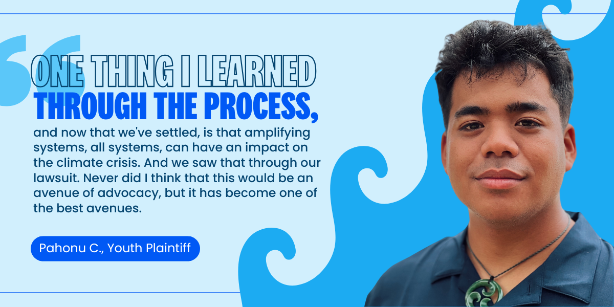In this exclusive Q&A, Pahonu shares his passion for his cultural heritage, the challenges posed by climate change, and his hopes for how the Settlement Agreement will inspire Hawai‘i’s keiki (children) to continue advocating for their home and the planet.