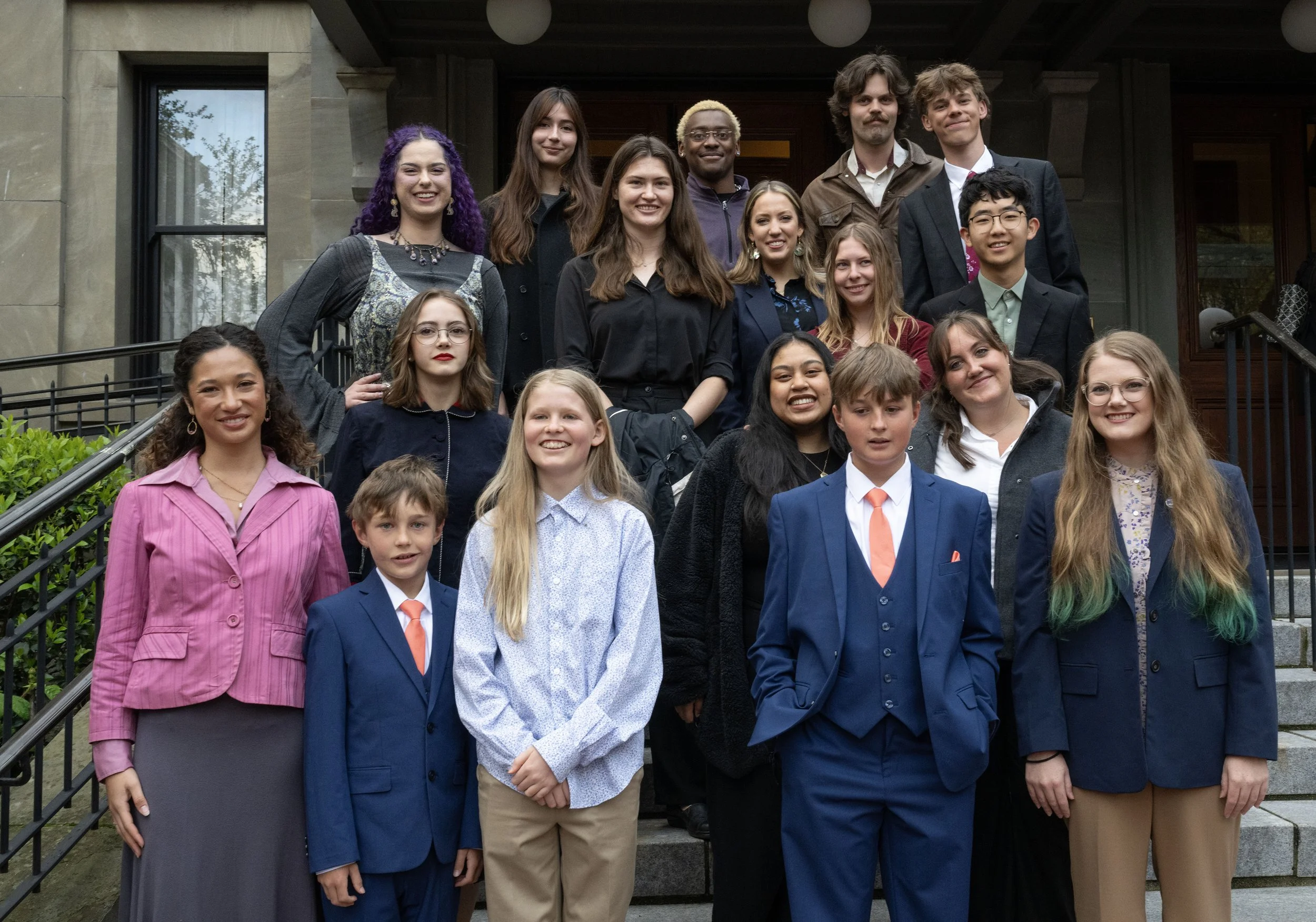 Lighthiser v. Trump youth plaintiffs in front of the Ninth Circuit Court of Appeals in Portland, OR, for their hearing on April 13, 2026. Photo by Robin Loznak.