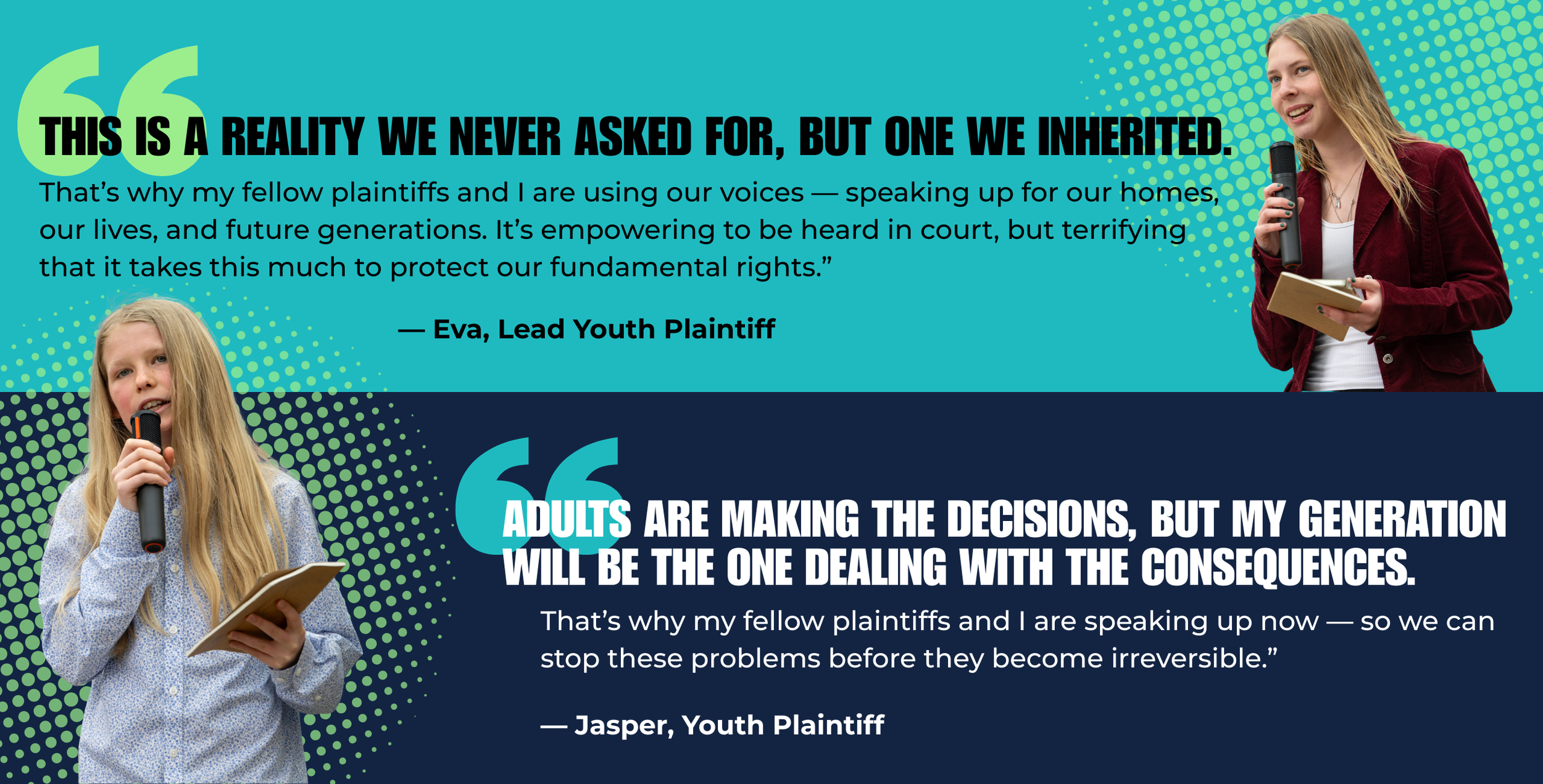 “What we’re talking about is the right to life and liberty of these children. And some of them have suffered life-threatening harm because of pollution and heat.” Julia said. “And we’re not just talking about climate change. We’re talking about the direct air pollution that harms their lungs and their lives.”