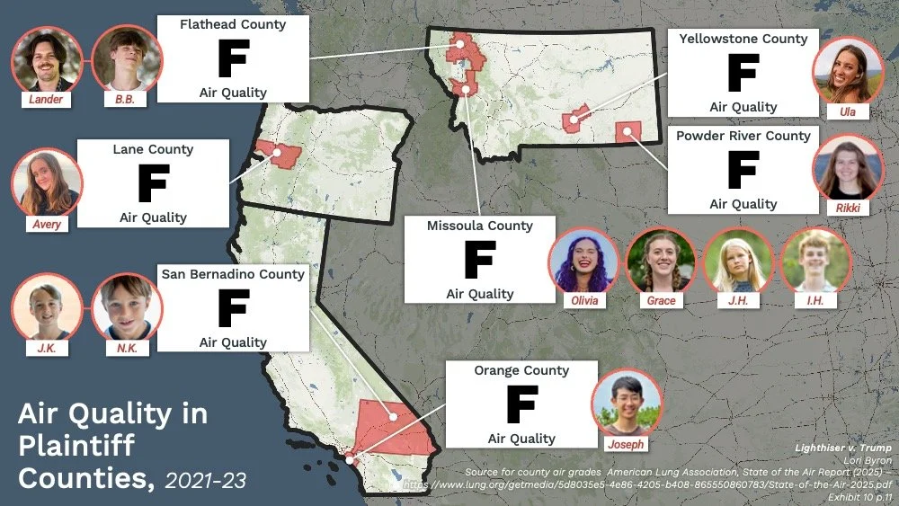 Inside a packed courtroom, Judge Christensen heard live testimony from several of the youth plaintiffs. One by one, the youth stepped forward as they shared deeply personal stories that no child should have to tell. They spoke of gasping for breath during asthma attaches, fleeing their homes as wildfires consumed familiar landscapes, collapsing from heat stroke, watching their education opportunities crumble, and experiencing fear of not knowing what the future holds for them. Their testimony was raw, unflinching, and heartbreaking —but they were not alone. Standing with them were some of the world's most distinguished voices: a Nobel Peace Prize-winning climate scientist, seasoned engineers and economists, a former presidential Senior Advisor, and a pediatrician who has spent over four decades caring for children. These experts didn't just present data—they bore witness to a moral crisis, offering irrefutable evidence of how President Trump's executive orders are actively inflicting harm on these 22 brave young Americans and the deeply concerning overstep of presidential power.